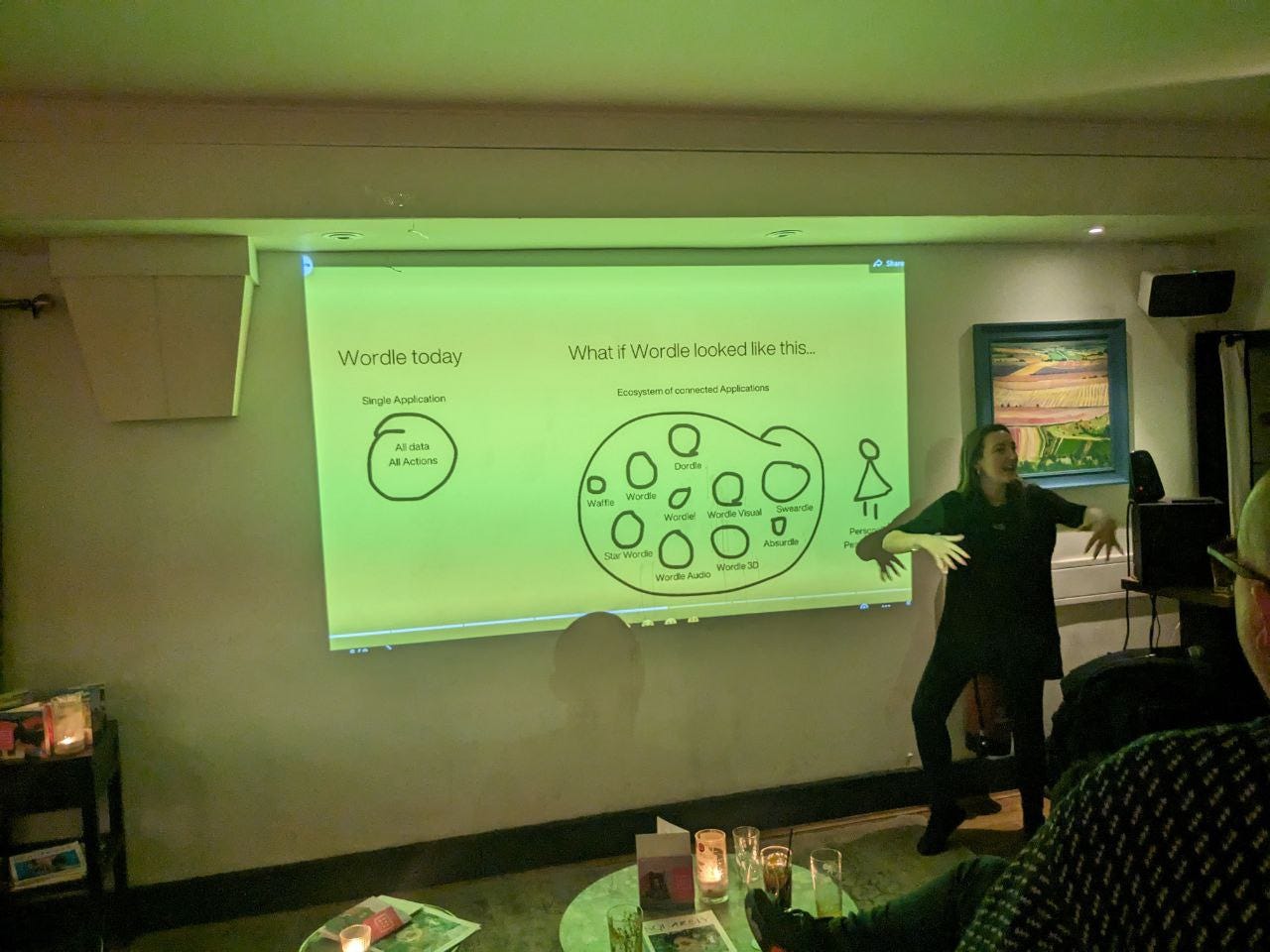 The whole presentation was about the concept of shifting from apps to ecosystems of connected apps, using Wordle as our (deliberately simple) example.