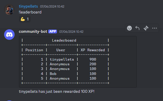 This one was a Discord bot that lets you reward people in your community with points by reacting to their message with a “💪” and then lets you see the community points leaderboard. He’s actually made a tutorial on how to build this too, you can find it on our Youtube.